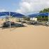 Die Liegestühle sind am Strand, auf der Liegewiese und am Pool mit den nötigen Sicherheitsabständen aufgestellt.