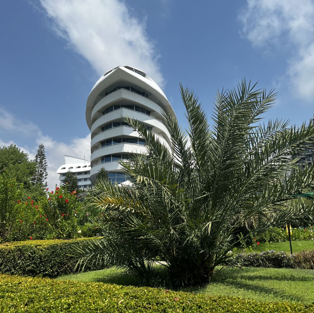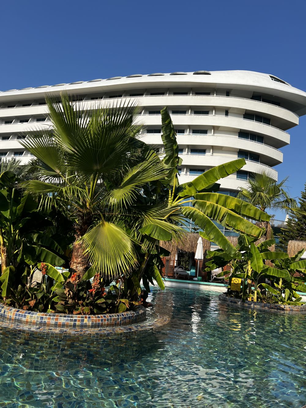 Wir verbrachten unsere Herbstferien in der Südtürkei. Das Hotel Blue Waters Club in Side liegt in einer grosszügigen Grünlandschaft, direkt am Meer mit Steg. Untergebracht waren wir in einem Familienzimmer Deluxe, mit zwei separaten Schlafräumen und zwei Nasszellen. Die Zimmer waren sauber, die Betten angenehm, lediglich mit der Klimaanlage war etwas nicht so wie es sollte (zu warm in der Nacht).